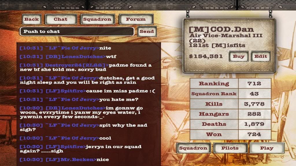 Great game Ryan, your team fought well. You are a great pilot, and a great Misfit. You fit right in here. You got me twice in a row, more than once. Next time we meet, we will try again. I know it won't take long, your a good flier.