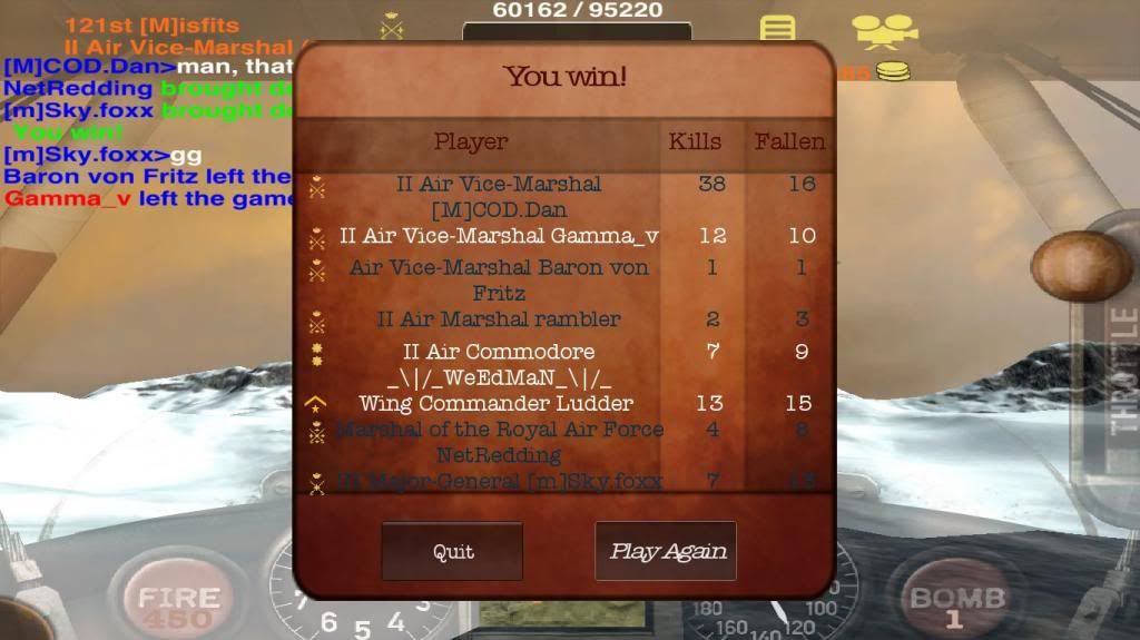 Good games tonight [M]isfits! Pete my brother form another Mother! Always a pleasure flying you bud.. lmao every time were in game. btw! I moved up two spots in that game!
