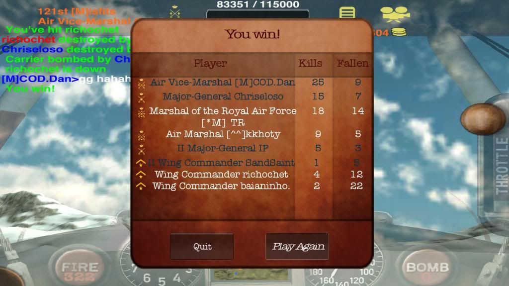Thats ok, that game was so laggy it was ridiculous! Almost unplayable at times, got so bad many reds were giving up, and we finished off carrier with a few tank shots and won.