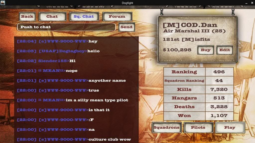 Good game n lots of fun flying with u,dogss.. I think u will have the record of holding in level 30 for over a year n half.. U deserve to be a moraf,good luck with that,bro. Wish to fly again soon with u.