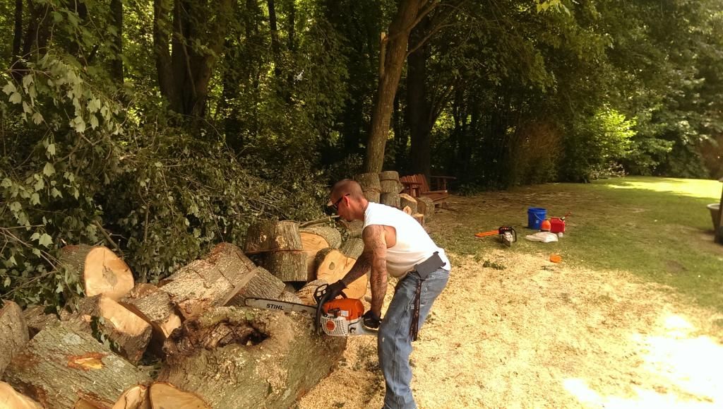 Well Looking Good but one thing caught my eye there brother! If your Stuck doing it on your own who's is taking the pic? The Tree maybe , or did you beat down that UFO and make the mini me Hulk do it? Jk if you where closer to me Id take all that wood!! but only the wood the tree produced just saying I say you trying to watch me change in the bathroom!!! Why do you think I took my time changing;)