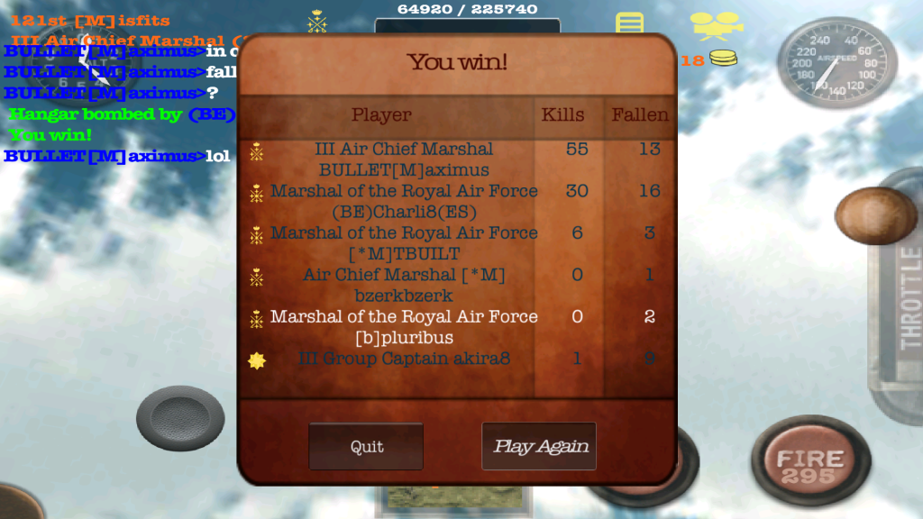 I just love how pilots play this game and have the advantage over others. They call us all whinners, complainers ect..... for making a comment about that. But yet, when the tides change, they start crying, saying it isn't fair. And leave game.