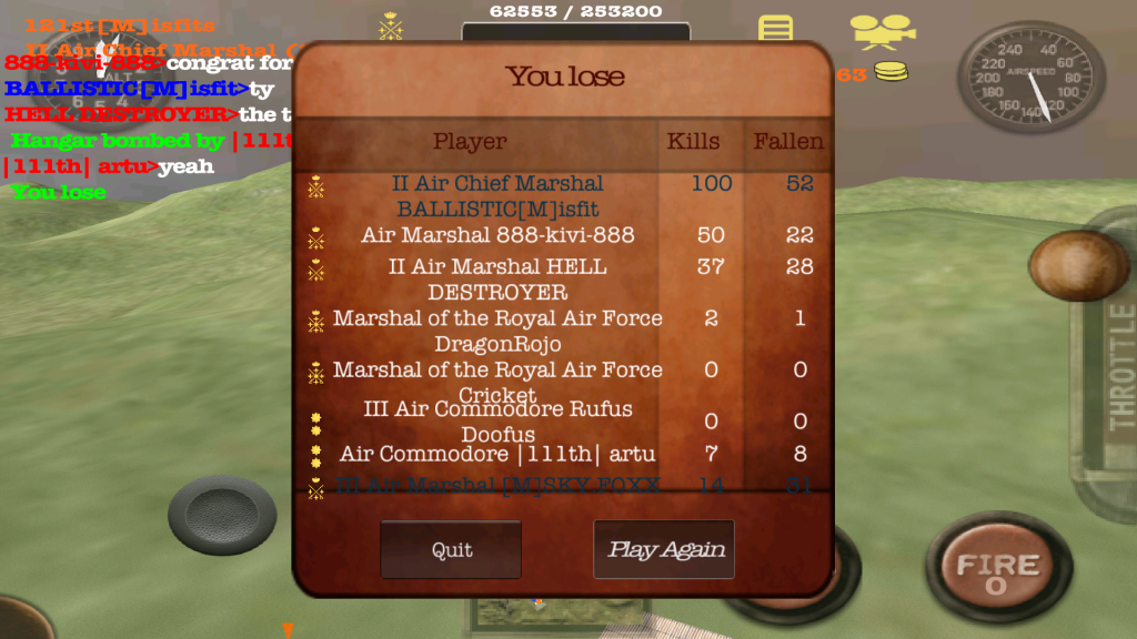 Hey my friends. Just stopped by because I think I upset one of your pilots and I wanted to apologize. Im sorry that I chose to dogfight with you instead of flying straight into your bullets in a game called Dogfight.