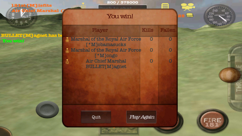 In addition I've been learning how to dogfight, some dogfighters now leave the game when I enter. I wish to thank the ones who have been teaching me these maneuvers. I no longer fear them and/or windows. HOWEVER I STILL HAVE A LONG WAY TO GO BUT I WILL BECOME A LEADING CONTENDER. I WILL NOT QUIT.