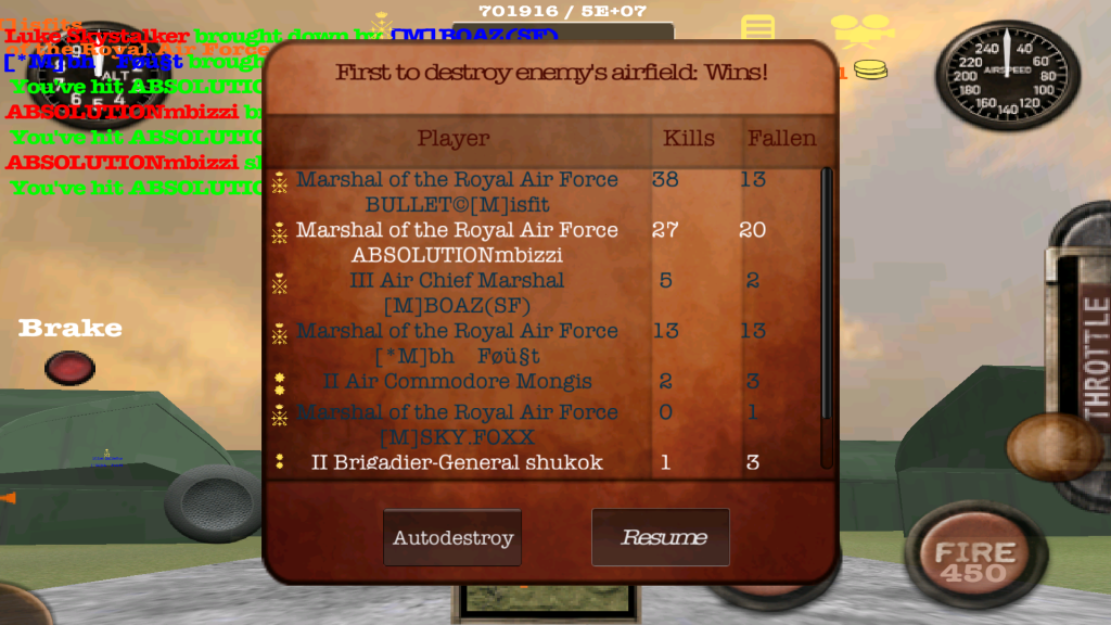Luke Skystalker and absolutnimmbiz or what ever his name is are a real class act. My side had a team killer we had to deal with. So I would have thought when they reached our base they would have not started to camp and spawn kill. When I got my 5 minute break SkyFoxx was left alone (sorry fox). I'm told they wouldn't even let him off the runway. Not what i would expect from a high ranking player...pay backs a big B