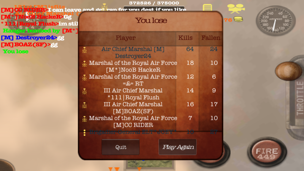 We were hanging onto one hanger only, they had all 8, CC RIDER and CUE BALL fought them for a long time by themselfs until I came in. BLOB, DELFI AND TOMMY GUNN could not miss, they were spanking us good, and then for some reason the game changed and we could not miss and then won the game. BLOB, DELFI AND GUNN, you guys were great. Good game.