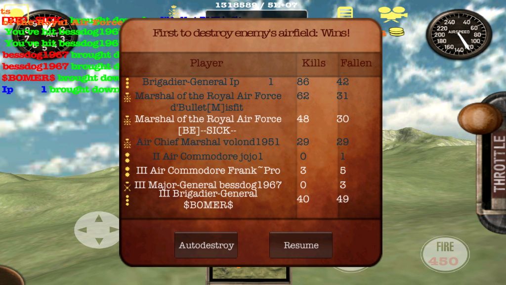 I am not impressed at all with the game today. Every time I get into a game I am getting killed by group captains and air commodores that have no business killing me before I can even line them up...and when I do hit them well before they even fire at me I still die... I can't parachute because my pilot spazzes all over the place. That's supposed to get fixed I guess. Why the planes had to be made bigger I'll never know...it took lots of games to learn how to kill from a distance but not now...