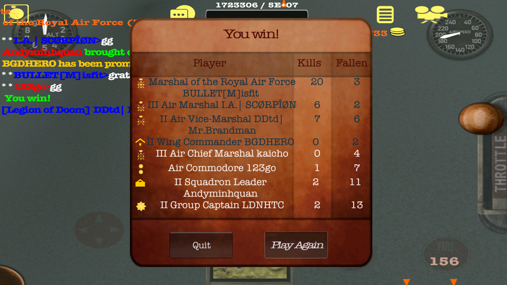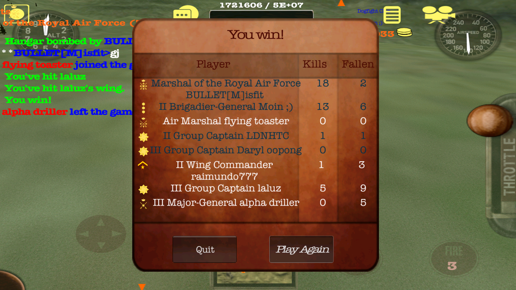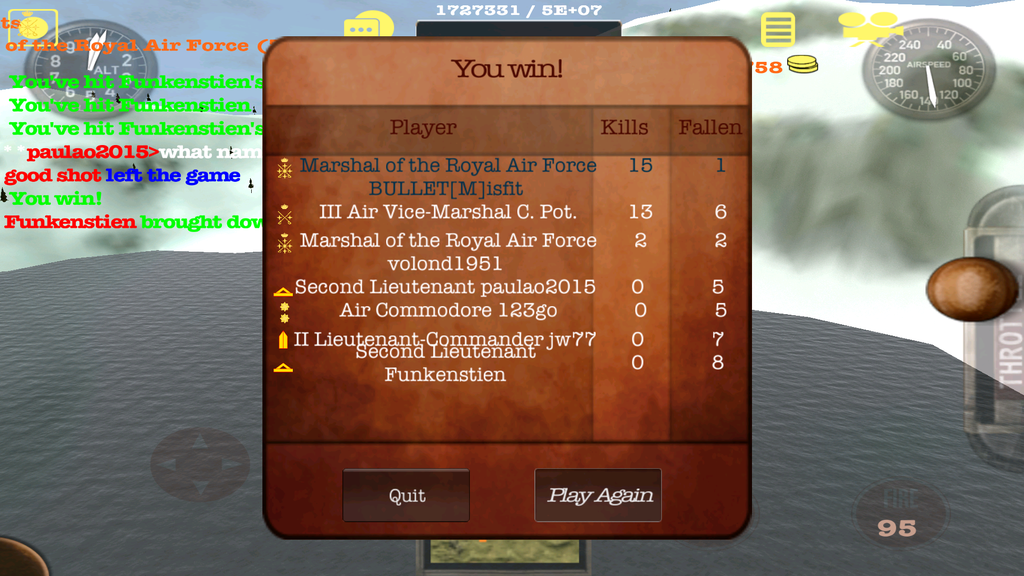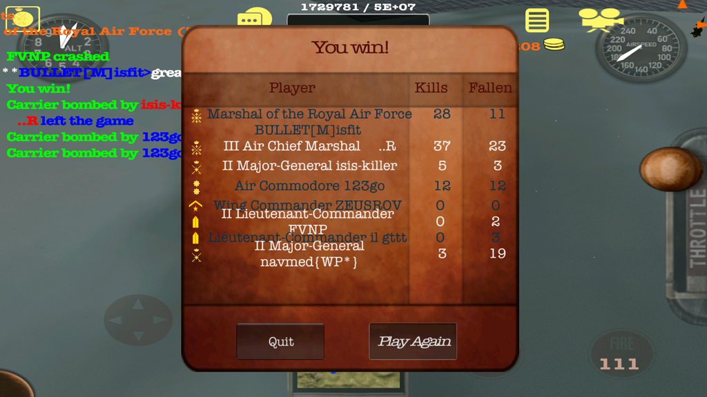 Got some time in the sky tonight. Started out against B.52. Was horrible. Unistalled and reloaded the app twice. Seemed to help. Got in a pretty good scrap with D61T, love flying with him. We did pretty good until the droppers and campers over ran us. Next game was a drop, camp and sneak fest. The reinstall seemed to fix my control issue. Managed to rack up quite a few kills in the last two. Gotta get a new tablet, no doubt about it.