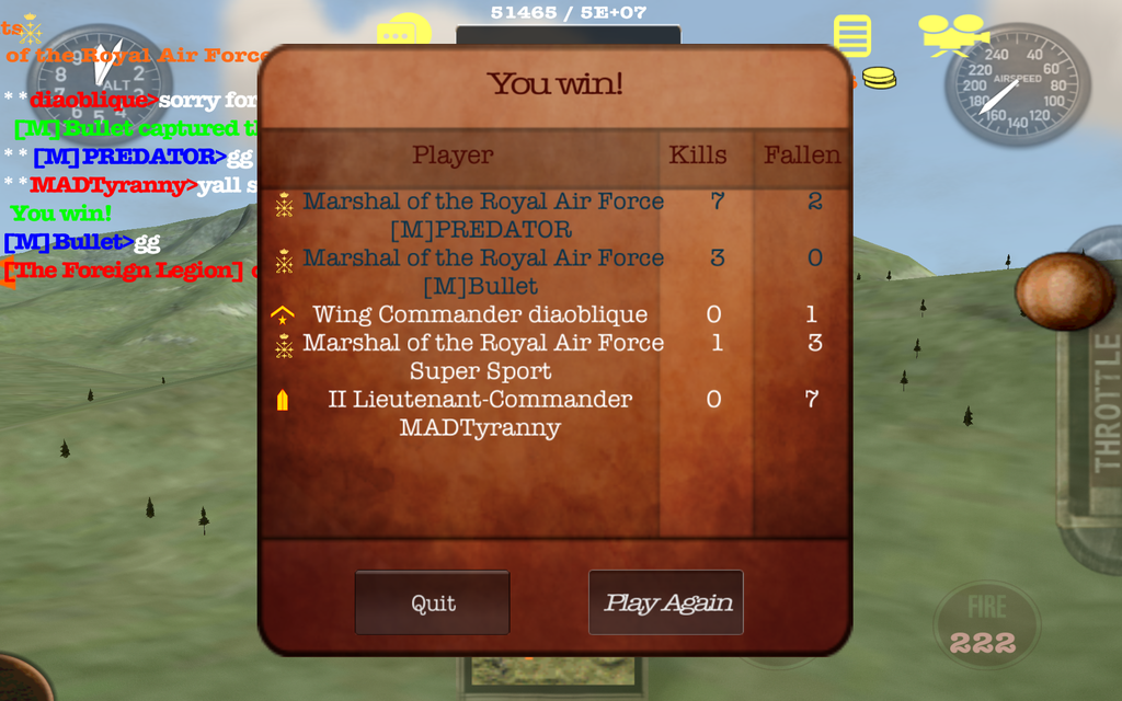 Sorry I couldn't stay longer ,just popped in for a quick pre work game, glad I was able to swop much rather fly with than against misfits.