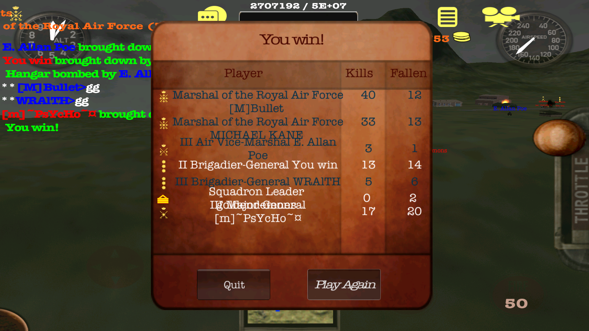 BULLET [M]isfit wrote: Hey Misfits. Just wanted to stop in and say hi currently my wife is pretty kissed about this game so I don't play as much, but please don't count me out. I'm still here and still get up in the air when I can. I see we have President CROCKETT back. Yay!!!!